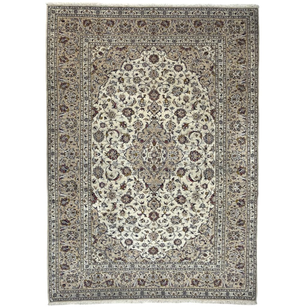 295 x 203cm Hand Knotted Persian Ivory Kashan Rug